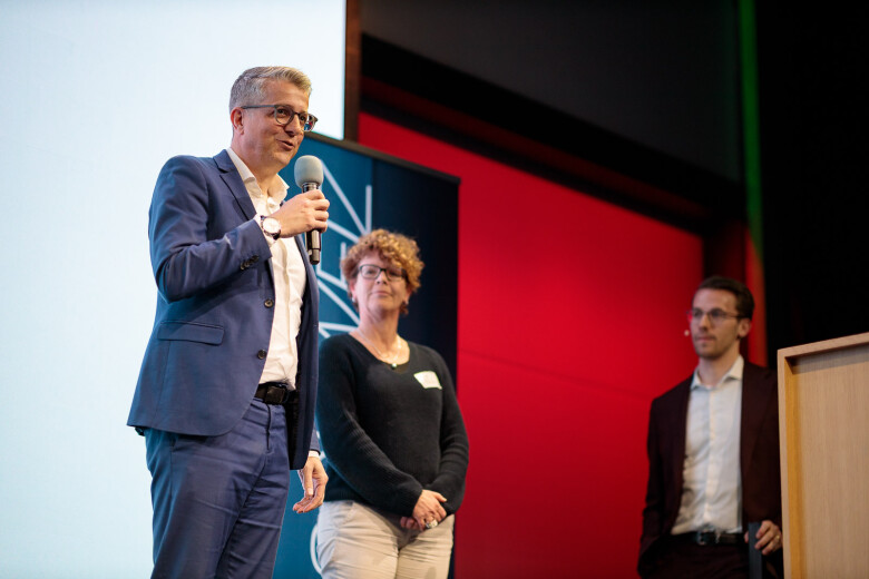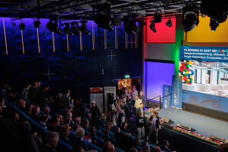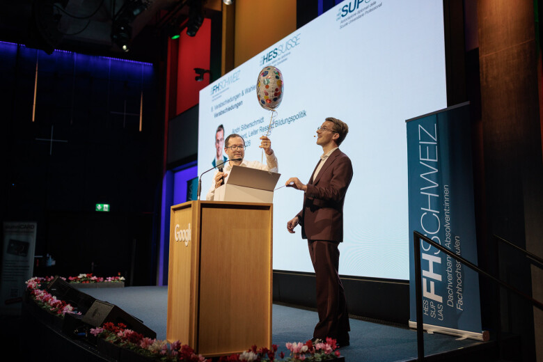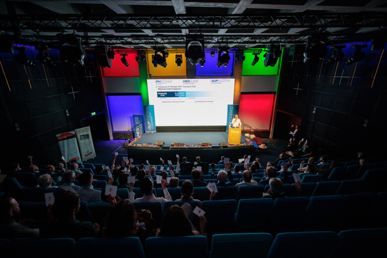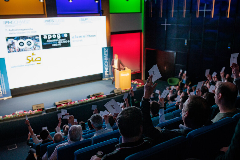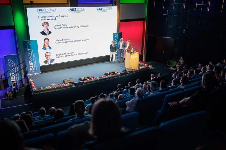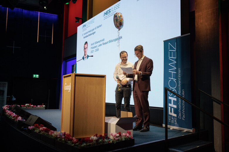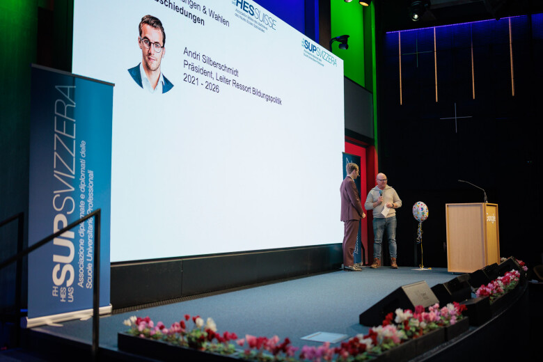 Dopo l'assemblea, l'ex presidente Andri Silberschmidt ha aperto la parte pubblica e ha fatto da ponte con il programma serale. Con il microfono in mano, ha ceduto la carica al suo successore, il consigliere agli Stati Benjamin Mühlemann. Nel suo discorso di insediamento davanti ai delegati e ai membri, ha sottolineato l’importanza dello «spirito comunitario» ed ha evidenziato quanto sia fondamentale una comunità attiva per l’ulteriore sviluppo della SUP SVIZZERA. Il suo percorso personale – dalla scuola universitaria professionale al giornalismo e alla comunicazione aziendale fino alla politica – sottolinea lo stretto legame tra formazione, pratica e società.