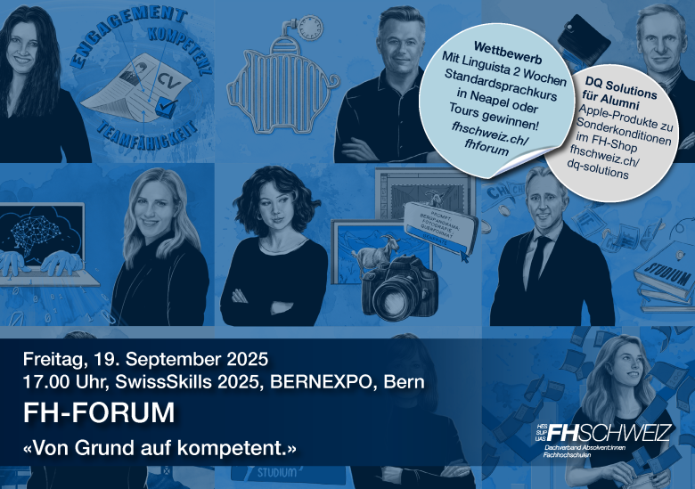 Am Freitag, 19. September 2025 findet an den SwissSkills das nächste FH-Forum statt. Im Zentrum stehen Kompetenzen, ihre Entwicklung und Bedeutung für die Zukunft. Spannende Referate, Diskussionen und ein Netzwerk-Apéro erwarten dich. Jetzt Platz sichern und dabei sein!