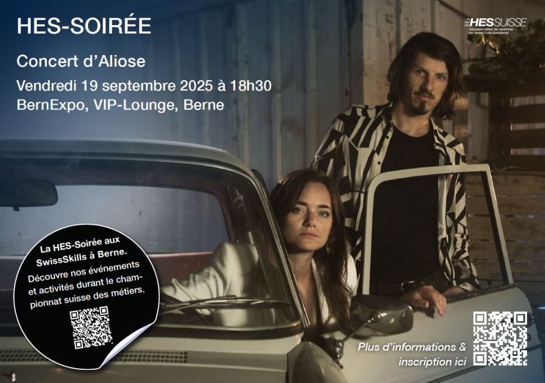 Am 19. September 2025 laden wir herzlich zur HES-Soirée an den SwissSkills in Bern ein! Freue dich auf ein exklusives Privatkonzert der Westschweizer Pop-Folk-Band Aliose, bestehend aus FH-Dozierenden und -Absolvent:innen. Geniesse einen stimmungsvollen Abend mit Musik, Netzwerk und Austausch unter FH-Alumni aus der ganzen Schweiz. Jetzt anmelden und dabei sein! Die Teilnahme ist kostenlos.