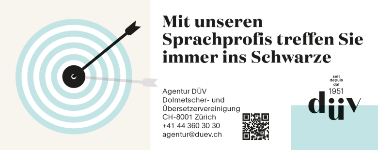 Agentur DÜV – die einzige Dolmetscher- und Übersetzeragentur mit angeschlossenem Berufsverband. Hinter unserer Agentur steht die Dolmetscher- und Übersetzervereinigung. Ihre 230 Mitglieder sind allesamt Masterabsolventen der ZHAW beziehungsweise einer anderen anerkannten Universität oder Ausbildungsstätte.