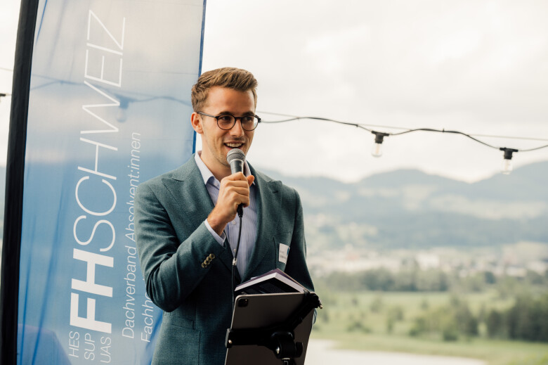 Nach einem Diskurs über den «Königsweg» mit Ständerat und FH-SCHWEIZ-Beiratspräsident Erich Ettlin, Bruno Wicki, Leiter Berufsbildung bei Schindler und SUPSI-Rektor Franco Gervasoni ergriff wieder FH-SCHWEIZ-Präsident Andri Silberschmidt das Mikrofon. Zusammen mit seinen Vorgängern Christian Wasserfallen, Jürg Lehni und Rolf Hostettler blickte er auf die Anfänge von FH SCHWEIZ zurück.