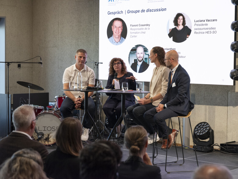 Florent Cosandey (Responsable de la formation chez Cartier), Sabine Östlund & Johan Vonlanthen (Responsable de projets stratégiques Groupe-E, Co-Fondateur Cavo-Pass, Ambassadeur HES)