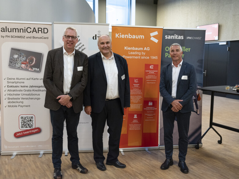 Paul Trüssel (Director Executive Search, Kienbaum), Prof. Dr. Jochen Schellinger (Vizerektor Lehre, Berner Fachhochschule BFH) & Alex Friedl (Leiter Leistungen, Partnering & Public Affairs, Sanitas)