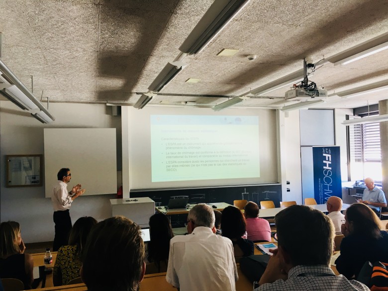 Echanges et débat entre des professionnels RH et des personnes invitées à partager leur expérience en tant que quadra et +: Mme Nadia Coubès-Hasler (NCH Consulting RH), Christof Jud (CFF), Rémy Sautter (Givaudan), Fabrice Dumont-Dayot (SP Solutions) et autres invités.